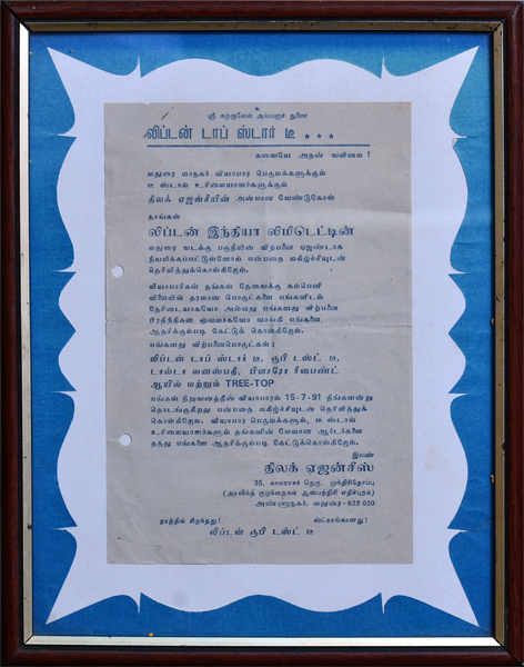 Thilak Agencies was started in the year 1991 as a small family partnership concern for doing agency business and appointed as stockist for M/S Lipton India Ltd, for selling Lipton Tea and Dalda Vanaspati for Madurai North Area.